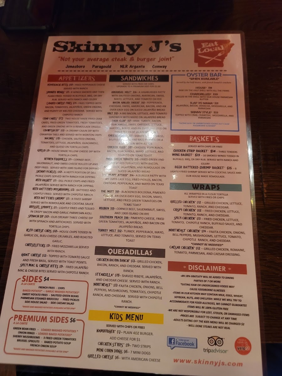 Steak slices. Choose two sides: fried green tomatoes, French fries, pickles, chips, etc. Steak temperature options: rare to well done.